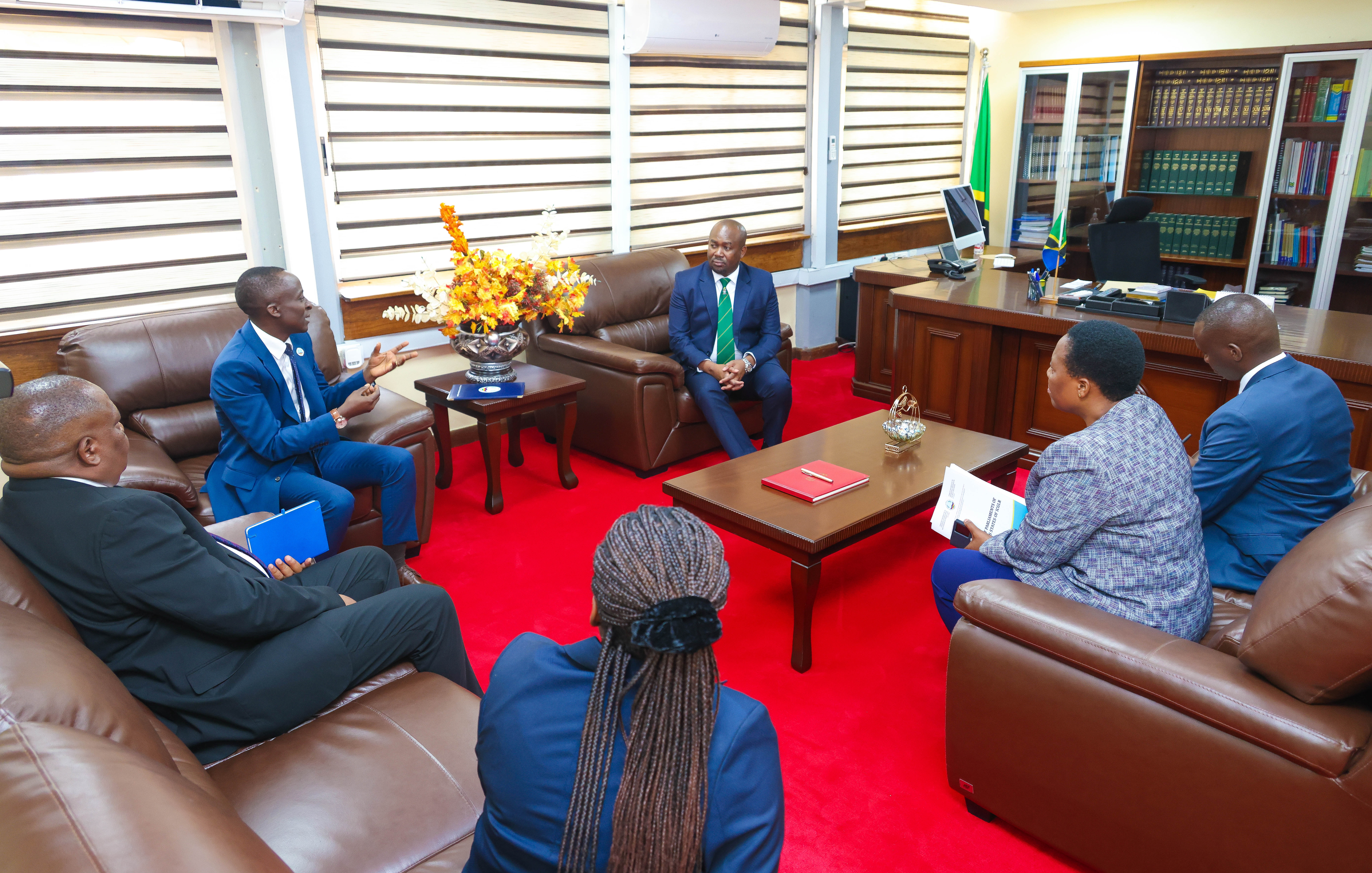 Katibu wa Bunge la Jamhuri ya Muungano wa Tanzania, Ndg. Baraka Leonard, amekutana na kufanya mazungumzo na Katibu Mkuu wa Jukwaa la Mabunge ya Nchi Wanachama wa Ukanda wa Maziwa Makuu (FP-ICGLR), Mhe. Balozi Dkt. Deo Mwapinga alieambatana na ujumbe wake walipomtembelea tarehe 29 Januari, 2026 Ofisini kwake Bungeni Jijini Dodoma.